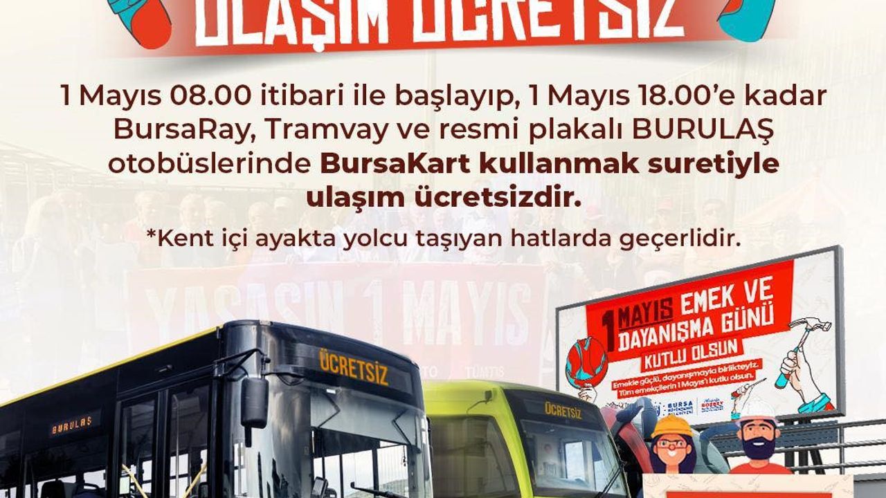 Bursa Büyükşehir Belediye Başkanı Mustafa Bozbey, emeğin ve emekçinin yanında olmaya devam ettiklerini belirterek 1 Mayıs Emek ve Dayanışma Günü’nde kent içi toplu ulaşımın ücretsiz olacağını açıkladı.