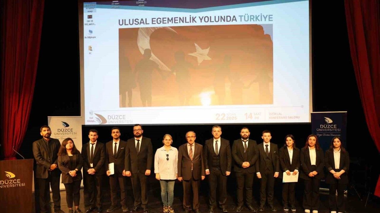 Düzce Üniversitesi Fen Edebiyat Fakültesi, Eğitim Fakültesi ile Sanat Tasarım ve Mimarlık Fakültesi iş birliğinde, 23 Nisan Ulusal Egemenlik ve Çocuk Bayramı’nın 105. yıl dönümü dolayısıyla "Ulusal Egemenlik Yolunda Türkiye" başlıklı anlamlı bir panel düzenlendi.