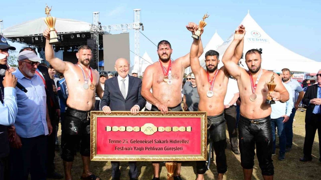 Samsun Terme Belediyesi tarafından düzenlenen 25. Geleneksel Sakarlı Hıdırellez Kültür Sanat ve Spor Festivali kapsamında bugün gerçekleşen Yağlı Pehlivan Güreşleri, nefes kesen mücadelelere sahne oldu. Yaklaşık 400 pehlivanın er meydanında ter döktüğü güreşlerde, Tanju Gemici başpehlivan olarak altın kemeri kazandı.