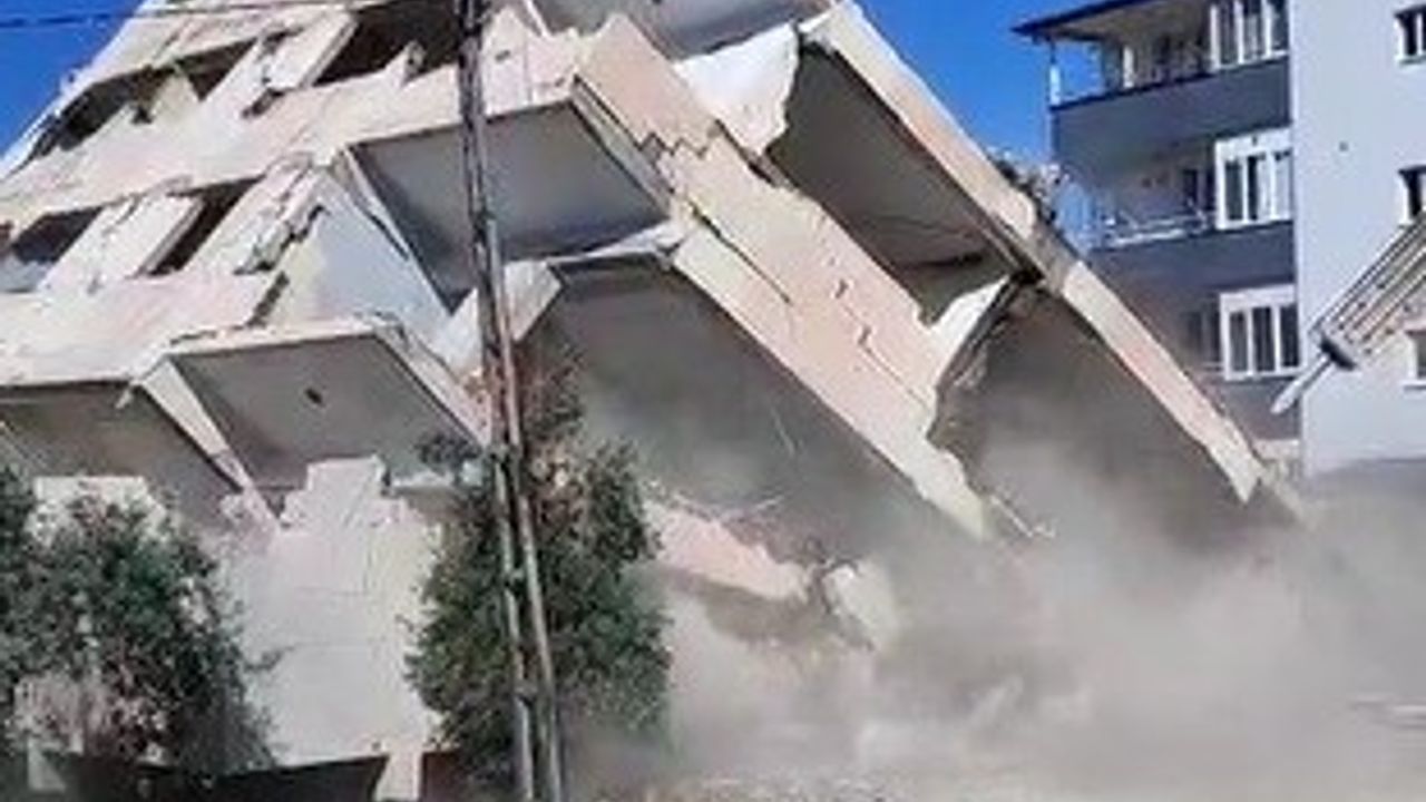 Kahramanmaraş merkezli depremlerde ağır hasar alan Hatay’da mahkeme süreci sona eren binaların yıkım ve enkaz kaldırma çalışmaları aralıksız sürüyor. Antakya ilçesi Esentepe Mahallesi’nde bulunan 4 katlı bina, iş makinesinin darbesiyle yıkıldı. Binanın yıkılma anı ise kameralara anbean yansıdı. 4 katlı binanın yıkımı esnasında herhangi bir olumsuzluk yaşanmadı.