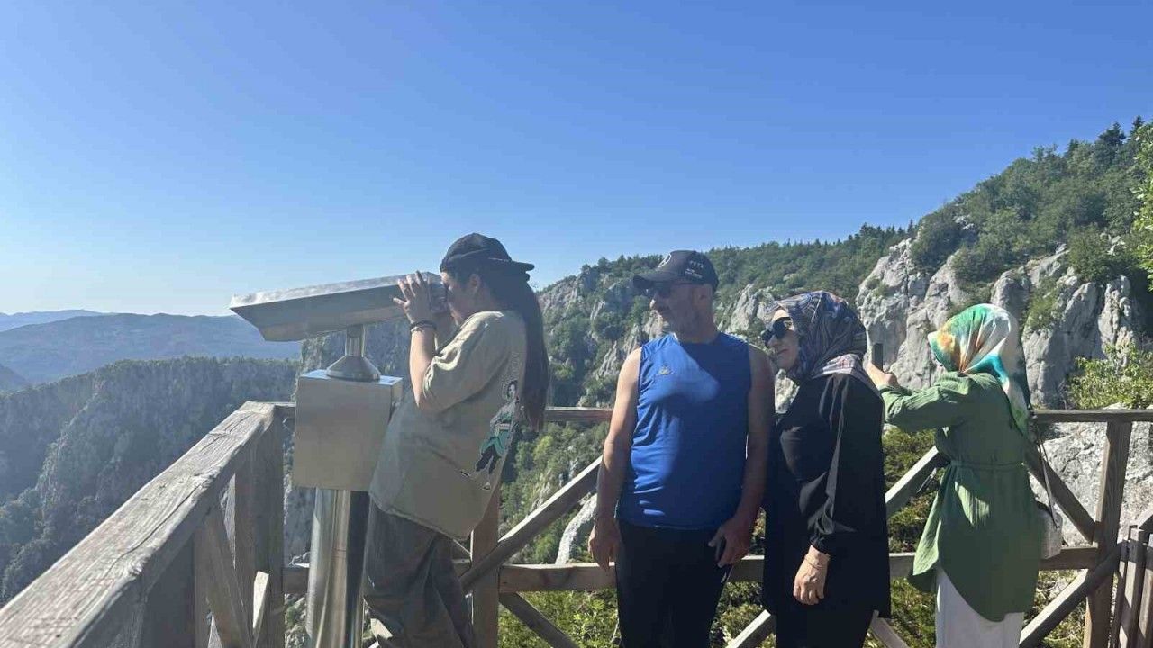 "Şehitler diyarı" ve "evliyalar şehri" olarak bilinen Kastamonu, son yıllarda yapılan yatırımlarla kültür turizminin yanı sıra doğa turizminde de öne çıkıyor. Tarım ve Orman Bakanlığı ile Azdavay Belediyesinin hazırladığı, Kuzey Anadolu Kalkınma Ajansı (KUZKA) desteğiyle hayata geçirilen cam teras projesi, 2025 yılının ilk 8 ayında 80 binden fazla turisti ağırladı. Küre Dağları Milli Parkı’nın kalbinde yer alan, Çatak Kanyonu’nda 450 metre yükseklikte bulunan cam teras, ziyaretçilere hem adrenalin dolu anlar yaşatıyor hem de doğal güzelliklerin eşsiz manzarasını sunuyor.