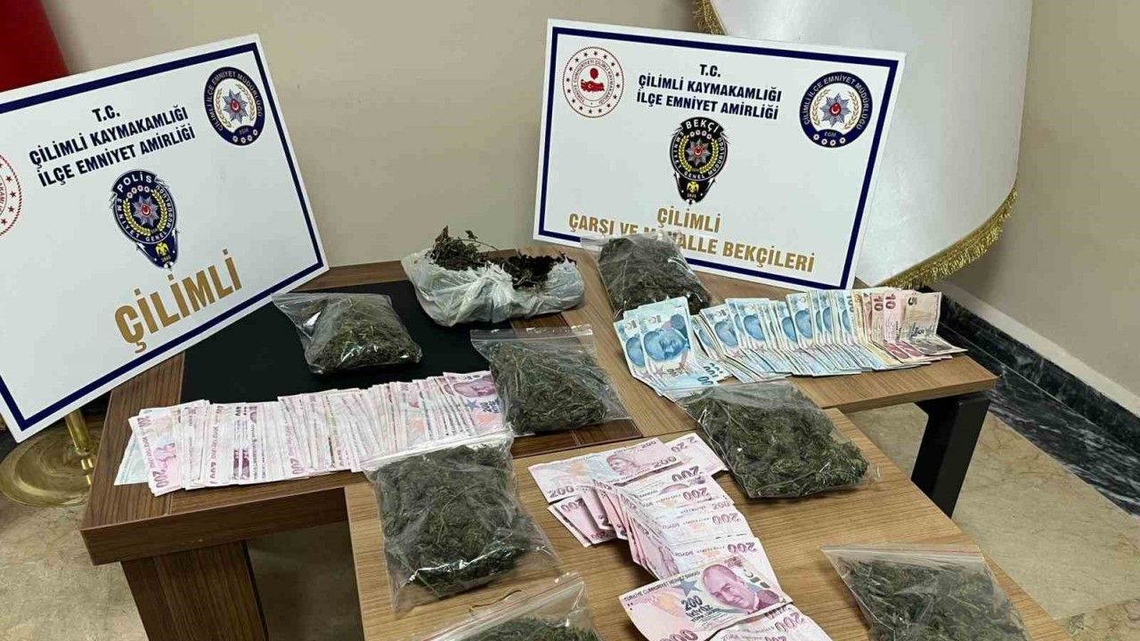 DÜZCE(İHA) – Düzce’de Çilimli İlçe Emniyet Amirliğince uyuşturucu madde ticaretinin engellenmesine yönelik yapılan çalışmalarda 8 parça halinde toplam 550 gram esrar maddesi ele geçirildi.