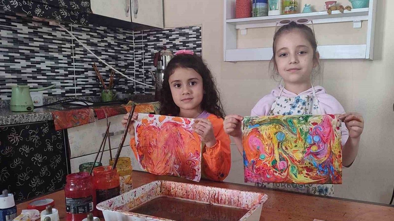 Kahramanmaraş’ta geleneksel ebru sanatına gönül veren minik sanatçılar, yaşlarından beklenmeyecek bir ustalıkla eserler ortaya koyuyor.