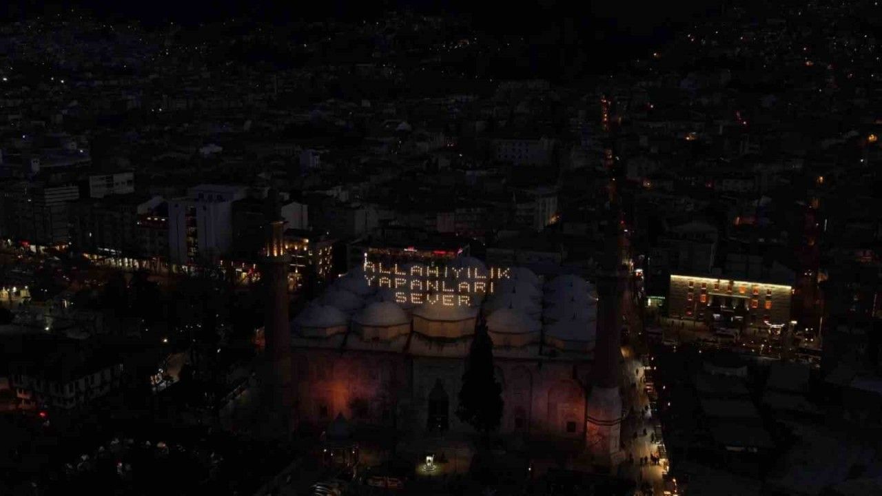 İslamiyetin en büyük 5 mabedi arasında gösterilen 626 yıllık Bursa Ulu Cami’ye Vakıflar Genel Müdürlüğü tarafından Ramazan mahyası asıldı. Bu yıl Diyanet İşleri Başkanlığı’nca belirlenen tema olan ‘İyilik ve Takva’ mahyalarda yer alacak. Bu çerçevede Bursa İl Müftülüğünce ilk 15 gün için belirlenen ‘Allah iyilik yapanları sever’ sözü asılı kalacak. Sonraki 14 günde ise Kelime-i Tevhid geceleri aydınlatacak. Dün gece ilk kez iyilik mesajı Ulucami’deki mahyada aydınlatıldı.