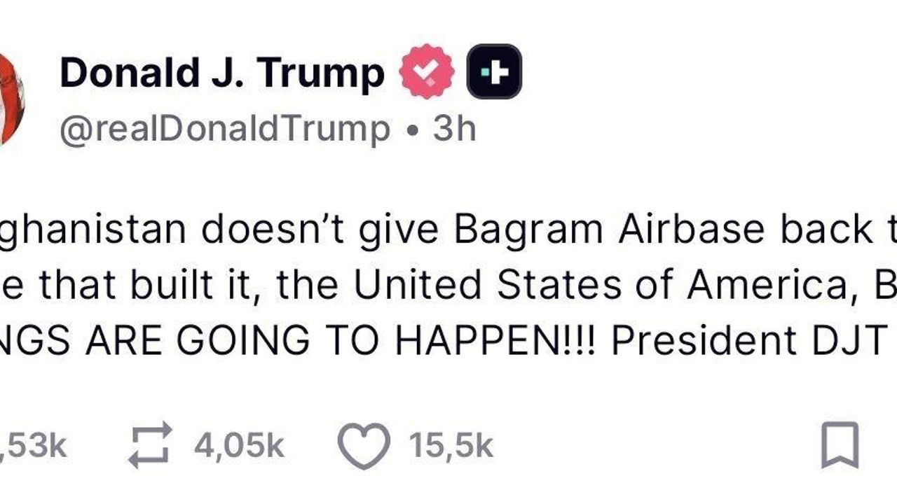 ABD Başkanı Donald Trump’tan Afganistan’a tehdit açıklaması geldi. Kendisine ait Truth sosyal medya platformundan yaptığı paylaşımda Afganistan’da bulunan Bagram Hava Üssü’nün kontrolünü geri almayı istediklerini yineleyen Trump, "Eğer Afganistan Bagram Hava Üssü’nü onu inşa eden ABD’ye geri vermezse, kötü şeyler olacak" ifadelerini kullandı.
