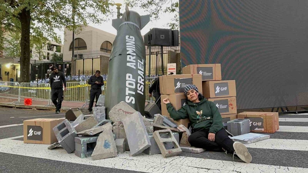 ABD’nin başkenti Washington’da toplanan bir grup aktivist, İsrail’in Gazze üzerindeki ablukasına son verilmesi çağrısında bulunmak üzere İsrail’in Washington Büyükelçiliği önünde gösteri düzenledi. "The Sea to DC" başlığıyla düzenlenen dayanışma gösterisinde, kısa süre önce Gazze’ye insani yardım ulaştırmak isterken İsrail güçleri tarafından uluslararası sularda alıkonulan Global Sumud filosunda yer alan Flotilla üyeleri de söz aldı. Aktivistler, Gazze’de yaşanan insani dramın son bulması gerektiğini vurgularken, ablukayı "uluslararası hukuka aykırı bir kuşatma" olarak nitelendirdi. Filo üyelerinden birçoğunun ilk kez kamuoyuna konuştuğu etkinlikte, tanık oldukları olayları paylaştılar. Filo üyesi aktivistler, "Gazze halkının direnişine ve onurlu mücadelesine destek vermeye devam edeceğiz" mesajını verdi.