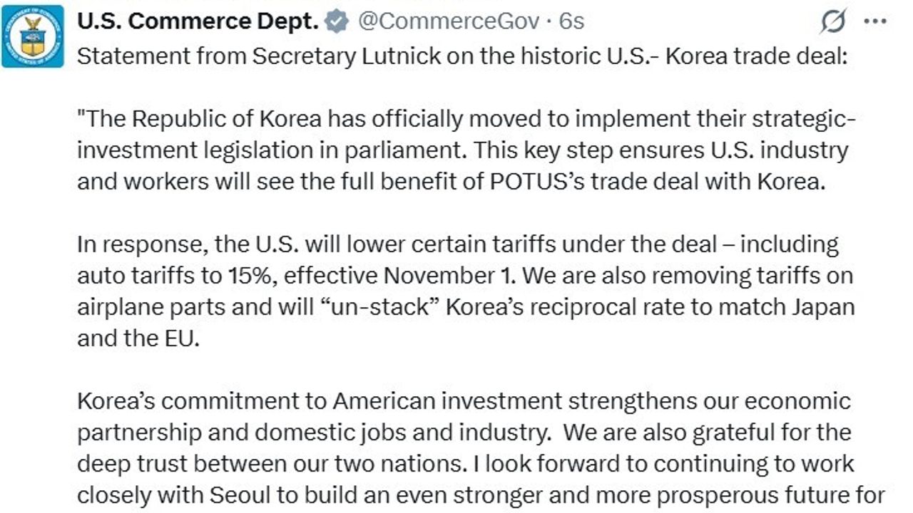 ABD Ticaret Bakanı Howard Lutnick, Güney Kore ile yürütülen ticaret müzakerelerinin sonuçlarına dair açıklamalarda bulundu. Lutnick, sosyal medya hesabından yaptığı paylaşımda, Güney Kore’nin stratejik yatırım yasasını parlamento aracılığıyla resmen yürürlüğe koymak için harekete geçtiğini belirterek, "Bu önemli adım, ABD sanayisinin ve işçilerinin, ABD Başkanı Donald Trump’ın Güney Kore ile imzaladığı ticaret anlaşmasının tüm avantajlarından yararlanmasını sağlayacak" değerlendirmesinde bulundu.