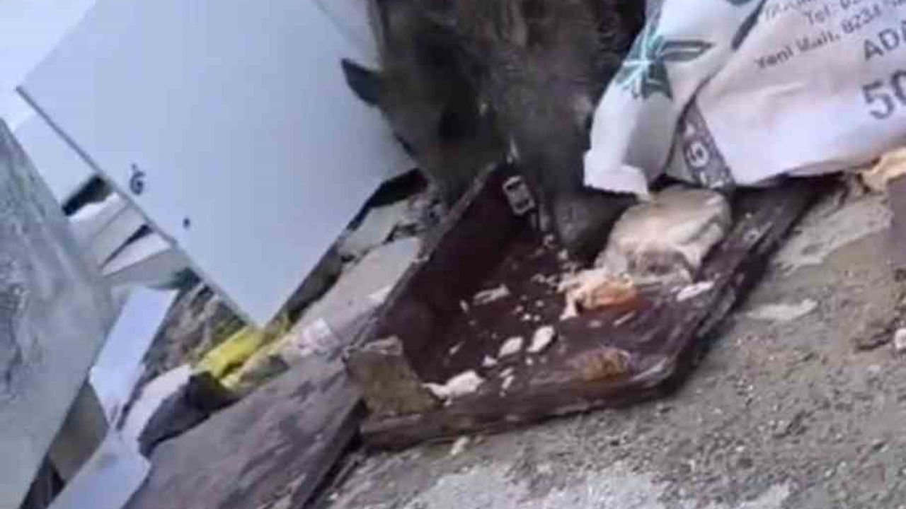 Defne ilçesi Harbiye Mahallesi’nde aç kalan domuz ve yavruları yerleşim yerine indi. Sıklıkla bölgede yaşayan vatandaşlarca görülen domuzlar, geçtiğimiz gün çöp konteynerinin çevresinde yem ararken görüntülendi. Bir süre yem arayan domuzlar, çevreye zarar vermeden gözden kayboldu. Domuzların yiyecek aradığı o anlar kameraya yansıdı.