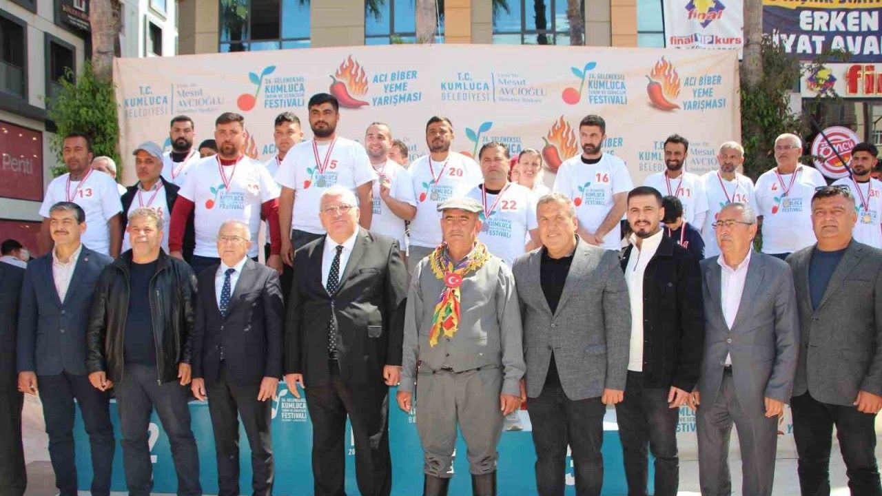 Kumluca ilçesinde bu yıl 27’ncisi düzenlenen Tarım ve Seracılık Festivali kapsamında gerçekleştirilen acı biber yeme yarışması büyük ilgi gördü. Kumluca Cumhuriyet Meydanı’nda düzenlenen yarışmada, 3 dakikada 398 gram acı biber yiyen Celal Derin birinci oldu. Geçtiğimiz yıl ikinci olan Derin, bu yıl şampiyonluk hedefiyle katıldığını söyledi.