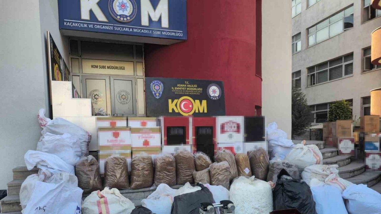 Adana polisi, eş zamanlı gerçekleştirdiği operasyonlarla kaçak 653 kilogram tütün, 1 milyon 250 bin adet makaron ve sigara ele geçirdi, 4 şüpheli gözaltına aldı.