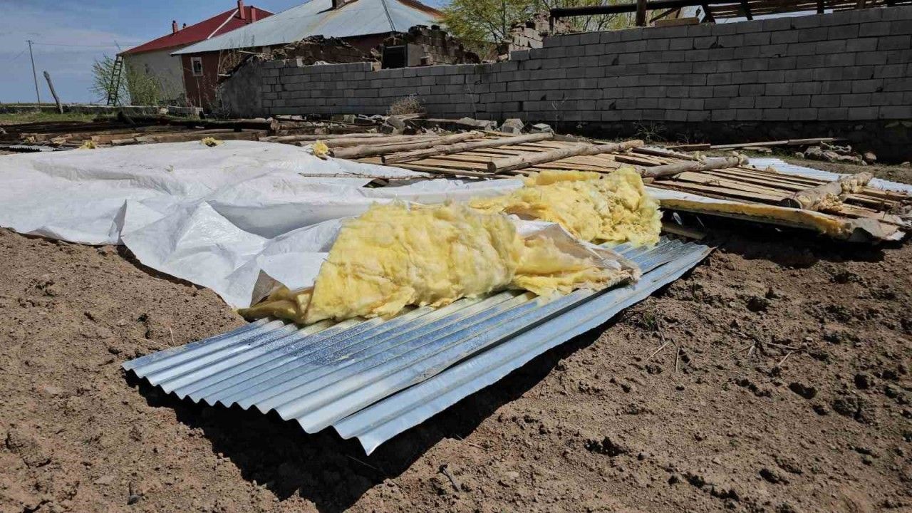 Bitlis’in Adilcevaz ilçesinde etkili olan fırtına nedeniyle bazı ev ve ahırların çatıları uçtu.