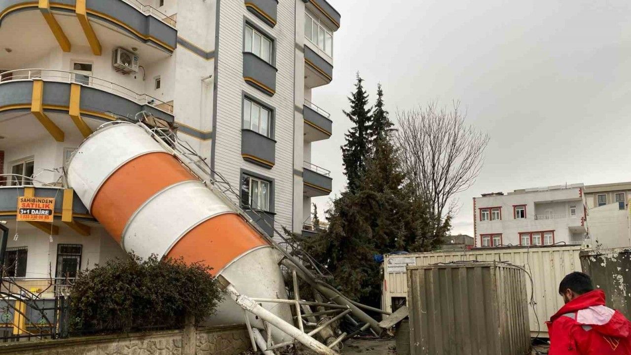 Adıyaman’da, beton silosu devrilerek balkonun üzerine düştü.