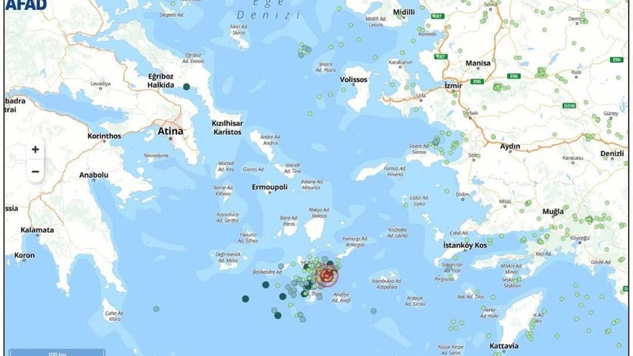 Yunanistan’ın Santorini Adası yakınlarında Ege Denizi’nde meydana gelen depremler ile ilgili Aydın İl Afet ve Acil Durum Müdürlüğü’nden (AFAD) açıklama yapıldı. 28 Ocak tarihinden bu yana deprem fırtınası şeklinde gerçekleşen depremlerin sayısı 400’ün üzerine çıkarken, kaydedilen en büyük depremin 4.8 olduğu açıklandı.