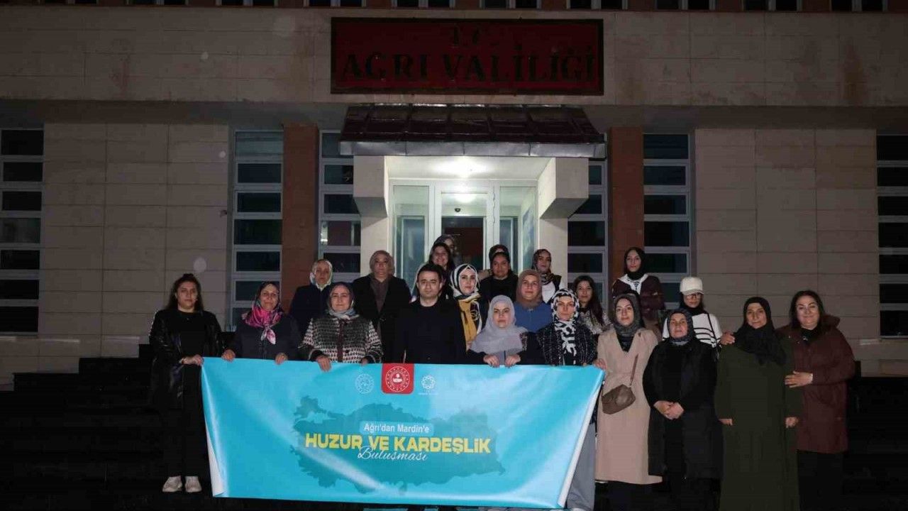 İçişleri Bakanlığı himayesinde, Ağrı Valiliği koordinesinde yürütülen "Huzur ve Kardeşlik Buluşmaları" projesi kapsamında; şehit ve gazi yakınları, gaziler, terör mağdurları, depremzede aileler, girişimci kadınlar ve öğrencilerden oluşan bir grup, Mardin’e gitmek üzere Valilik binası önünden uğurlandı.