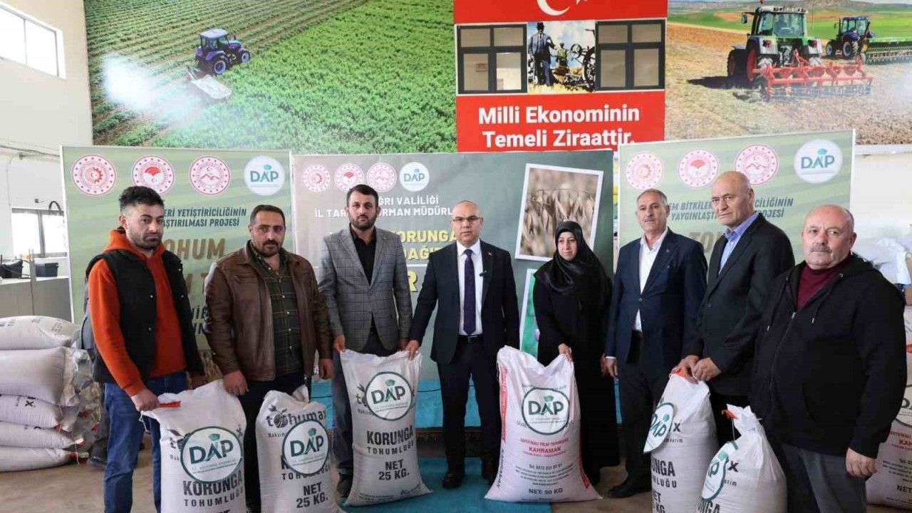Ağrı’da "Yem Bitkileri Yetiştiriciliğinin Yaygınlaştırılması Projesi" kapsamında 525 çiftçiye, yüzde 70 hibe destekli 90 ton korunga ve 30 ton yulaf tohumu dağıtıldı.