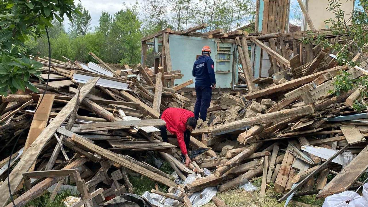 Bolu’da yıkım çalışmaları sırasında 2 katlı ahşap evin ikinci katından tahtaların kırılmasıyla düşen işçi, göçük altında kalarak yaralandı.
