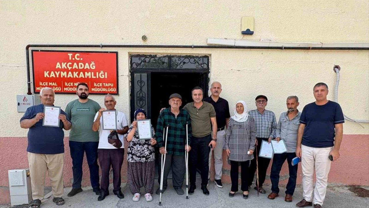 Malatya’nın Akçadağ ilçesinde 1997 ve 1998 yıllarında encümen kararıyla satışı yapılan taşınmazların tapu sorunu çözüldü. Aktepe Mahallesi Hecek mevkiindeki taşınmazların tapuları, yıllar süren bekleyişin ardından hak sahiplerine teslim edilmeye başlandı.