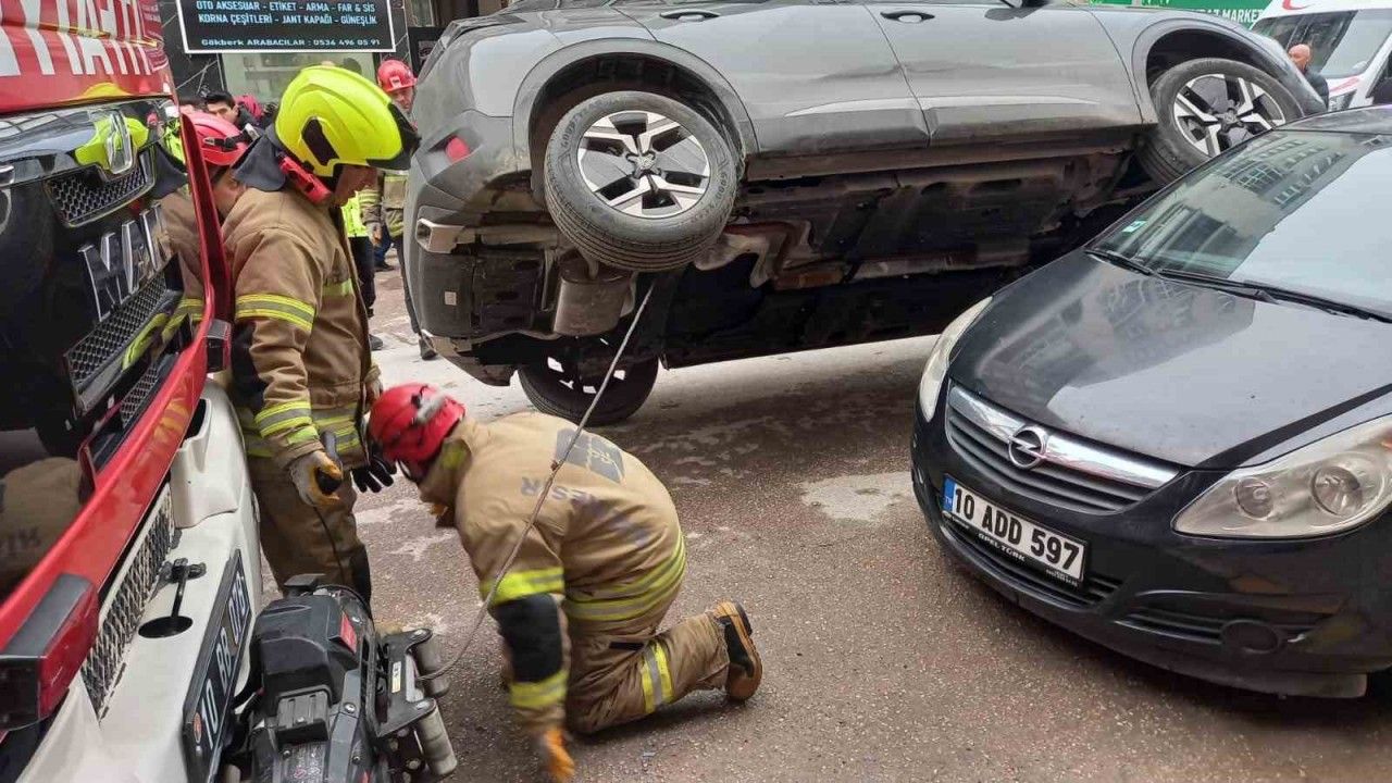Balıkesir’in Bandırma ilçesine bağlı Çınarlı Mahallesi Adalet Caddesi’nde meydana gelen ilginç kazada, bir otomobil park halindeki başka bir aracın üzerine çıkarak yan durdu.