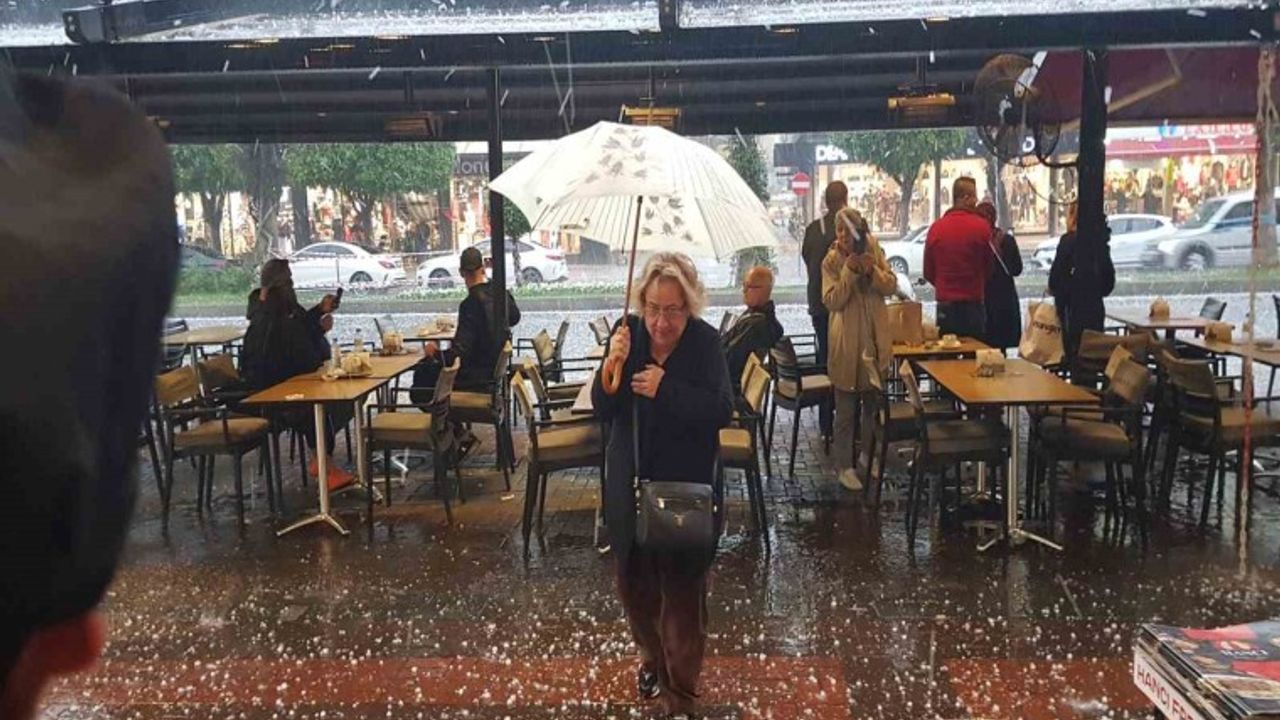 Alanya ilçesinde öğle saatlerinde başlayan sağanak yağmur hayatı olumsuz etkiledi. Yağmur kısa bir süre sonra yerini dolu yağışına bırakırken, yollar beyaza büründü. Vatandaşlar ise dolundan kurtulmak için iş yerlerine sığındı. Yoğun yağış sonucu adeta dolu seli yaşandı. Fındık büyüklüğündeki dolu yağışı kısa sürede etkisini yitirdi. 22 yıldır Antalya’da yaşadığını belirten bir vatandaş ise, ilk defa böyle bir dolu yağışını gördüğünü söyledi.