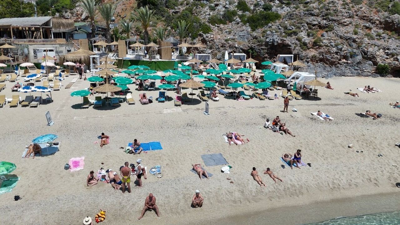 Antalya’nın Alanya ilçesinde hava sıcaklığının 30 dereceye çıktığı Mayıs ayında yerli ve yabancı turistler Kleopatra Plajı’na akın etti.