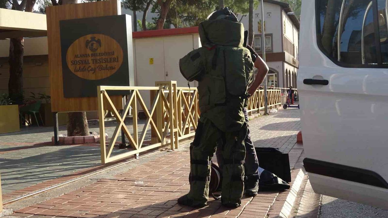 Olay, saat 17.30 sıralarında Alanya’nın Çarşı Mahallesi İzzet Azakoğlu Caddesinde bulunan İskele çay bahçesinde meydana geldi. Edinilen bilgilere göre, bahçede bulunan sahipsiz valizi gören iş yeri çalışanları durumu 112 Acil Durum Merkezine bildirdi. Olay yerine polis ve bomba imha ekipleri sevk edildi. Bomba imha uzmanı, şüpheli valizin bulunduğu alana yaklaşarak valizi dikkatlice inceledi. Yapılan incelemeler sonucunda valizin içinde kıyafetler bulunduğu tespit edildi.