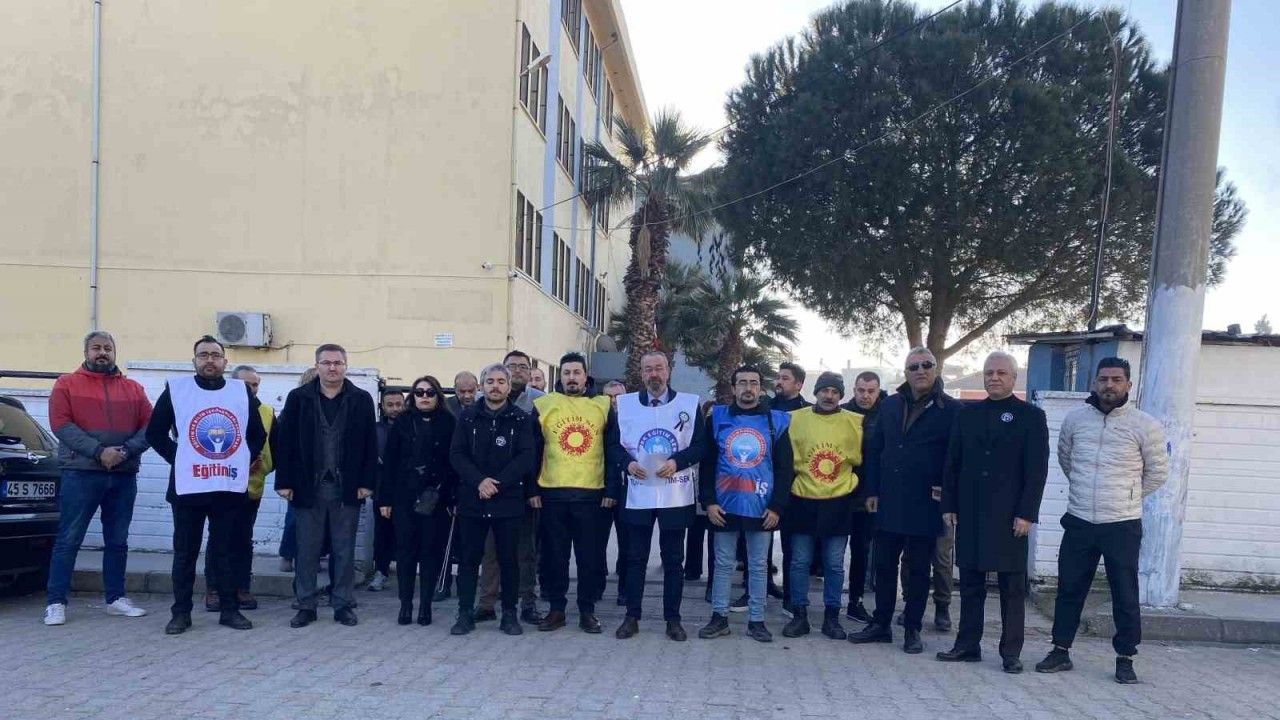 Manisa’nın Alaşehir ilçesinde iki şahıs tarafından okulda darp edilen Din Kültürü ve Ahlak Bilgisi Öğretmenine destek vermek için ilçedeki sendikalar ortak bir basın açıklaması yaptı. Sendikalar yaptıkları ortak açıklamada saldırıyı sert bir dille kınadı.
