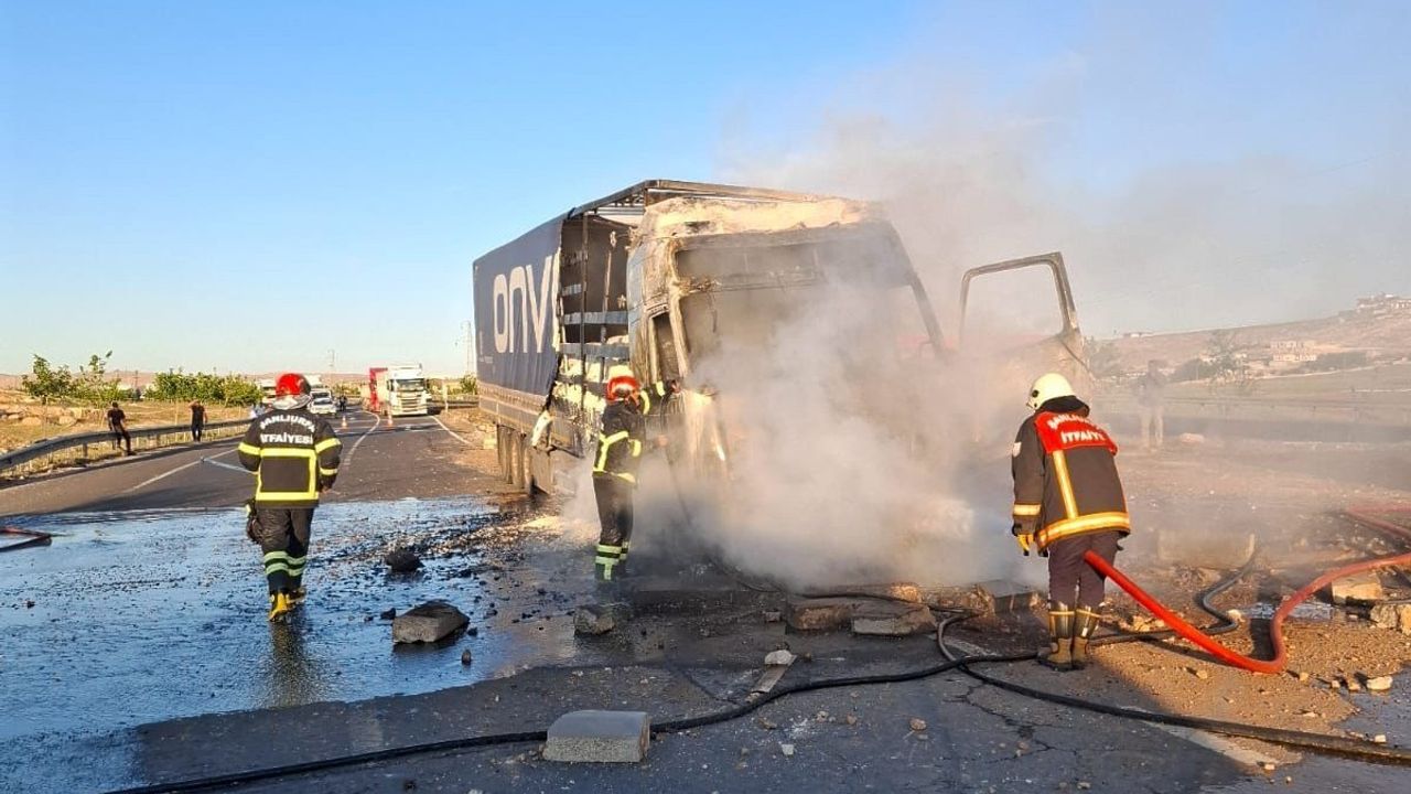 Şanlıurfa’da seyir halindeyken alev alan tır itfaiye ekipleri tarafından söndürüldü.
