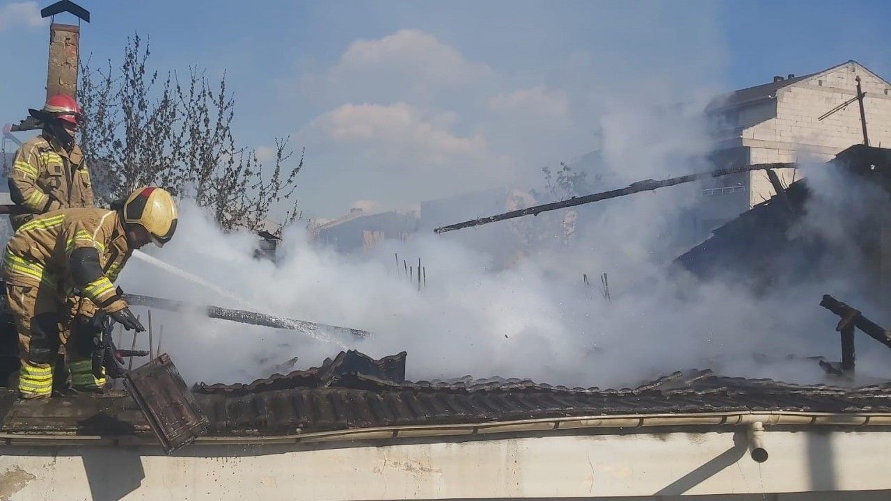 Bursa’nın İnegöl ilçesinde tek katlı ev alev alev yandı. Yangın ve söndürme anları havadan görüntülendi.