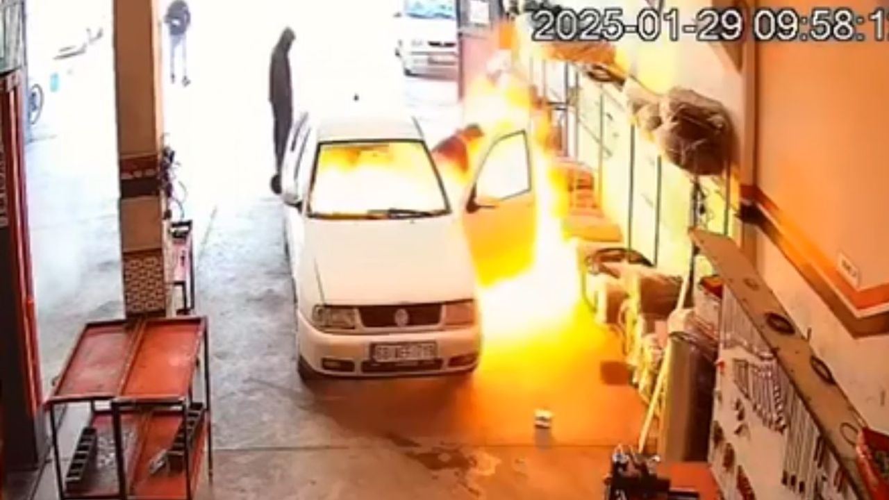 Olay, Aksaray oto sanayide bir dükkanda yaşandı. Edinilen bilgiye göre, gaz kaçağı nedeniyle tamir için bir dükkana getirilen araç, dükkan içine alındığı esnada aniden alevlerle parladı. Parlama anında araçta bulunan sürücü saniyelerle alevlerden kurtulurken, yaşanan o anlar anbean dükkanın güvenlik kamerasına yansıdı. Güvenlik kamerası görüntülerinde aracın dükkan içine alınışı, araç sürücüsünün tam araçtan inerken aracın alevlerle parlaması ve sürücünün son anda kurtulması görülüyor. Aracın patlama sesiyle parlaması herkeste şok etkisi oluştururken, bir süre ne olduğunu anlayamayan vatandaşlar tekrar bir patlama riskine karşı kaçıştı.