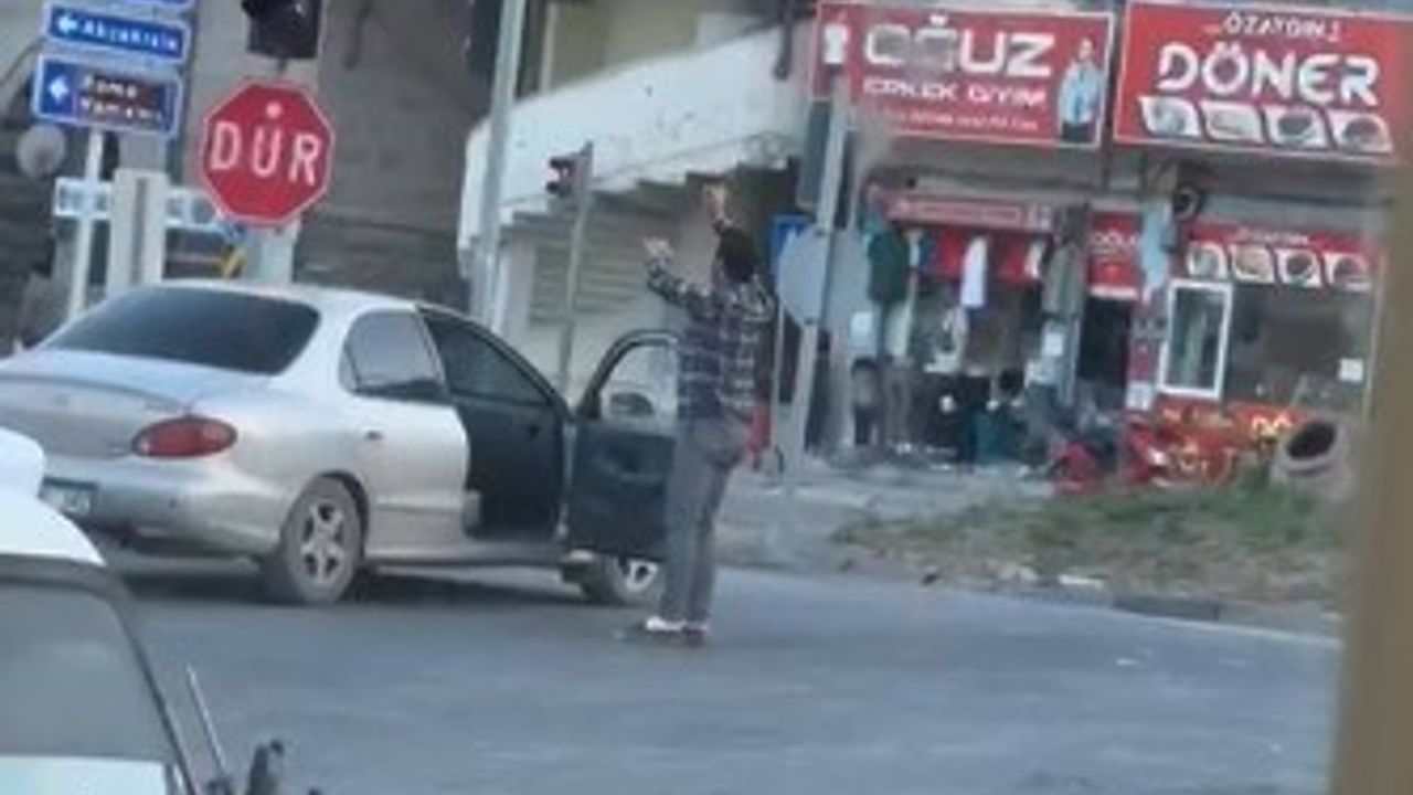 Yozgat’ta alkollü bir kişinin aracından inerek trafikteki ilginç hareketleri cep telefonu kamerasına yansıdı.