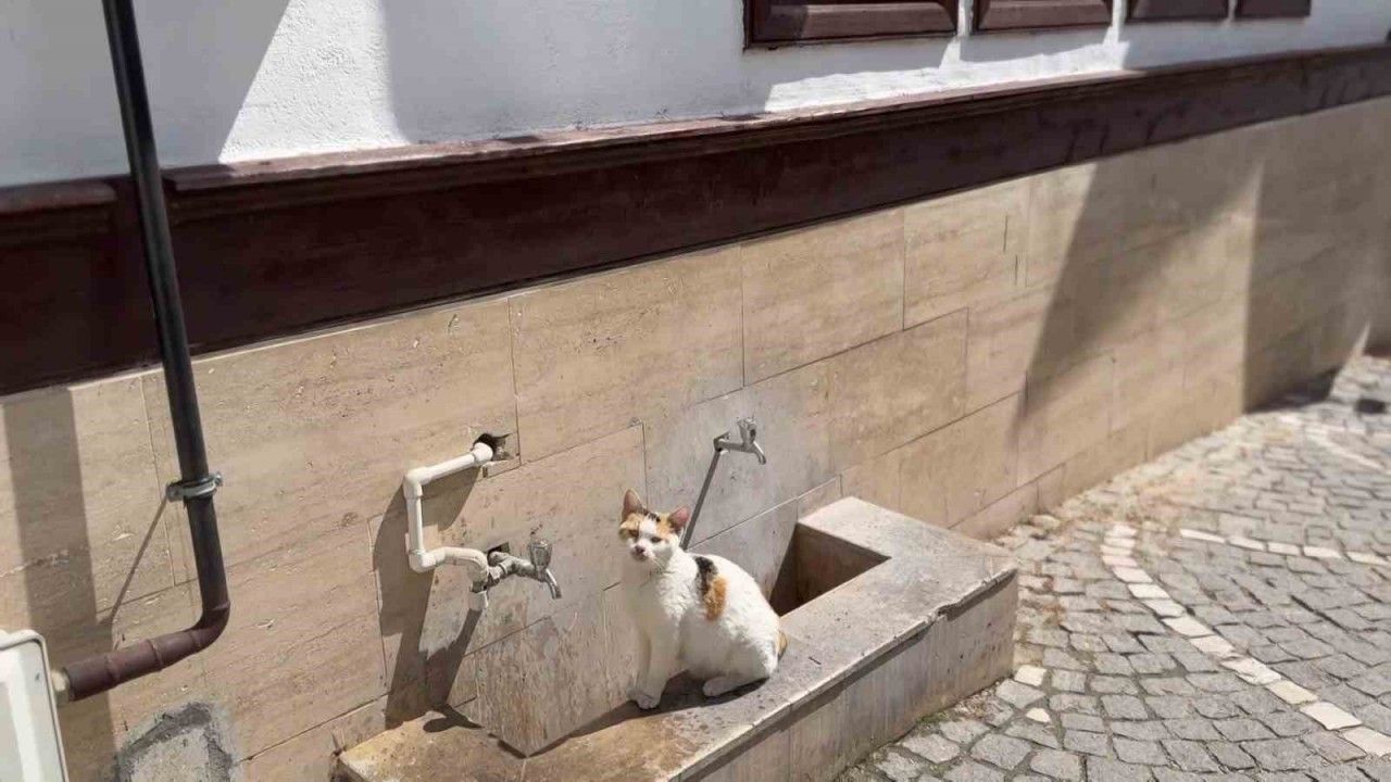 Amasya’da susuz kalan sokak kedileri su ihtiyaçlarını cami çeşmelerinin önünde karşılıyor. Kapalı çeşmelerin başında bekleyen kedilerin yardımına çeşmeyi açıp su içmelerini takip eden duyarlı vatandaşlar yetişiyor.