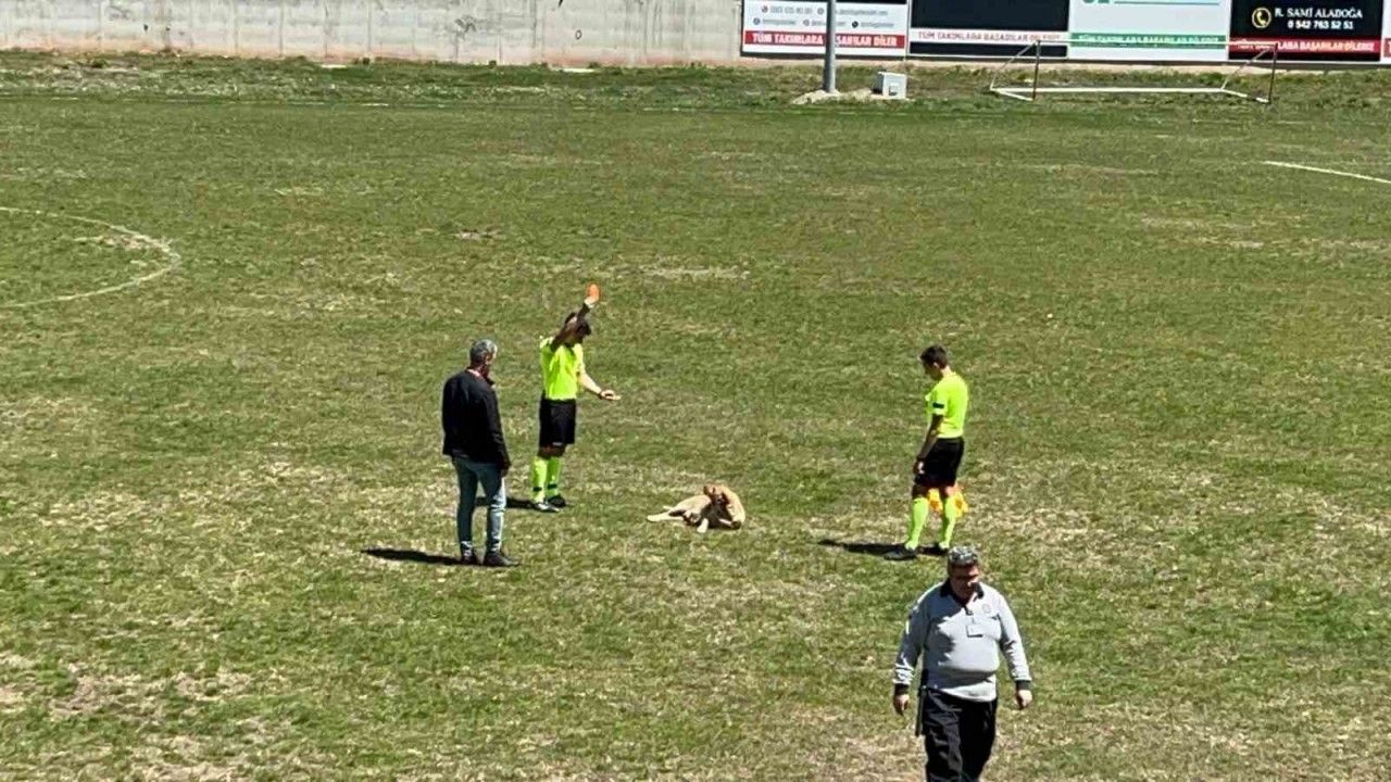 Konya’nın Beyşehir ilçesinde amatör müsabaka esnasında sahaya giren köpek, alanı terk etmeyince hakem kırmızı kart gösterdi.