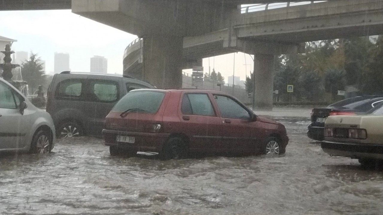 Ankara’nın Keçiören ilçesinde etkili olan sağanak, ulaşımda aksamalara neden oldu.