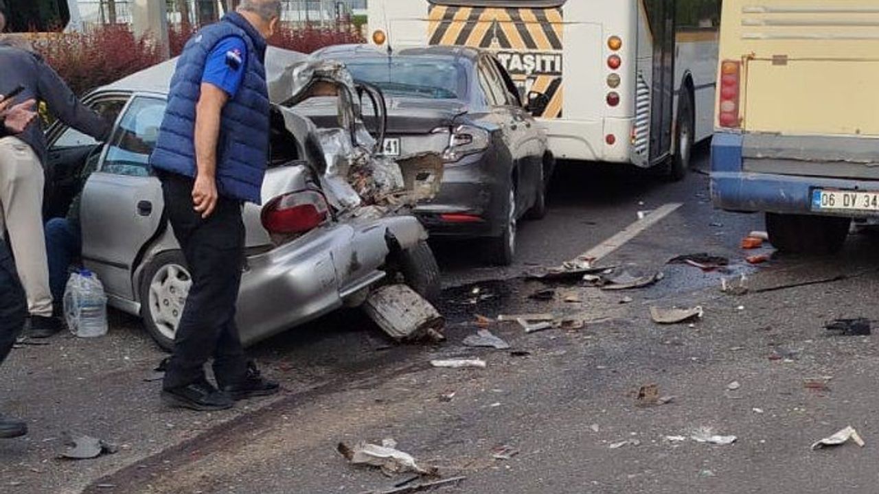 Ankara’da kontrolden çıkan işçi servisinin kırmızı ışıkta bekleyen araçlara çarpması sonucu meydana gelen trafik kazasında 14 kişi hafif şekilde yaralandı.