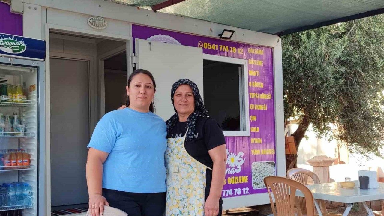Onikişubat İlçesi Tekerekyolundaki konteyner iş yerinde bazlama gözleme yaparak ev geçimlerini sağlayan anne Fatma Özdemir ve kızı Tuğba Altınköprü, "yapamazsın" demelerine rağmen iş yerlerini açarak kadınlara örnek oldu.