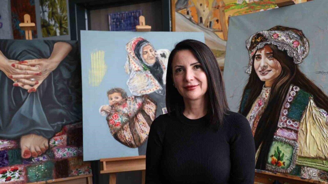 Nevşehir Şehit Demet Sezen Güzel Sanatlar Lisesi Görsel Sanatlar Öğretmeni ve Ressam Zeliha Bazoğlu, 2012’de anneannesi Bahriye Sarıgül’ün çeyiz sandığını açtığında sanata bakış açışı değişti. Bazoğlu, anneannesinin sandığında kendisine miras kalan yaklaşık 100 yıllık kanaviçeler ve dantellerle kendisine yeni bir tarz oluşturdu. Selanik göçmeni olduklarını söyleyen Bazoğlu, “Yağlı boya fırçanın dışına çıkabilecek malzemeler beni çok cezbetti. Çünkü ben dokunsallığı çok seviyorum. Dokunarak, hissederek daha çok karşı tarafa da yaptığımız işi hissettirebildiğimizi düşünüyorum. Bu dokunsallığın böyle kumaşlarla verilebileceğini düşündüm. Anneannem de köyün terzisiymiş. O da böyle kumaşlarla çok uğraşırmış, çok güzel dikişler yaparmış. Aynı yetenek bana da geçmiş. Ben de böyle kumaşın etkisini çok seviyorum ve bunu resimlerimde kullanmak istedim. Önce düz kumaşlarla başladım, ondan sonra anneannemin çeyiz sandığından çıkan kanepeleri bu kumaşlara dahil ettim. Böylelikle bu tekniği geliştirmiş oldum ve bu tekniğin dünyada ilk olduğunu düşünüyorum. Kumaş kullanan, tekstille yağlı boyayı kullanan sanatçı arkadaşlarım var ama herkesin tarzı çok farklı. Gelecek nesilleri bu eserlerle buluşturarak o dokunsallığı sağlayarak, o hissetmeyi sağlayarak onların da ruhunu besleyeceğini düşünüyorum. Zamanında yapılan bu işler çok yavaş yavaş, böyle hayaller kurularak o gaz lambalarının ışığında çok zor şartlarda ve tek tek yapılan işler. Onları bugüne taşıyıp, bugün bu yağlı boyalarla ve portrelerle birleştirip gelecek nesillere aktarmak beni çok heyecanlandırdığı için yeni eser üretimini de her zaman teşvik ediyor” dedi.