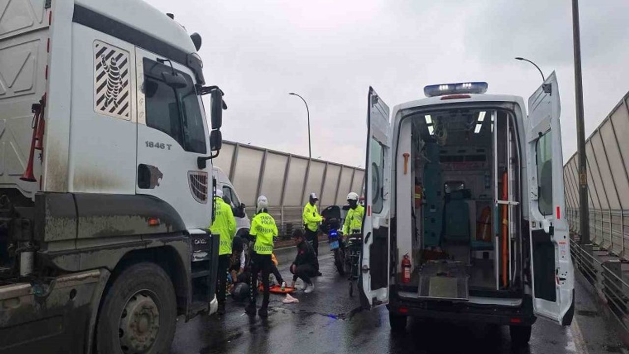Kaza, saat 11.30 sıralarında Haliç Köprüsü üzerinde meydana geldi. Edinilen bilgiye göre, Haliç Köprüsü üzerinden Edirne istikametine gitmekte olan ve Anneler Günü için çiçek siparişi götüren kurye Emir Bayrak idaresindeki 34 HNH 075 plakalı motosiklete, aynı yönde seyir halinde olan ve sürücüsünün kimliği öğrenilemeyen 34 CKY 790 plakalı hafriyat kamyonu çarptı. Kamyonun çarpması ile yaralanan sürücü düştü. Kazanın olduğunu gören sürücüler, durumu polis ve sağlık ekiplerine haber verdi. İhbar üzerine olay yerine gelen sağlık ekipleri, yaralı kuryeyi ambulans ile hastaneye kaldırdı. Kaza sebebiyle Edirne istikametinde oluşan trafik, kazanın kaldırılmasından sonra açıldı. Kuryenin taşıdığı sipariş ise olay yerine çağrılan başka bir kurye tarafından gideceği adrese götürüldü. Polis ekipleri, kaza ile ilgili inceleme başlattı.