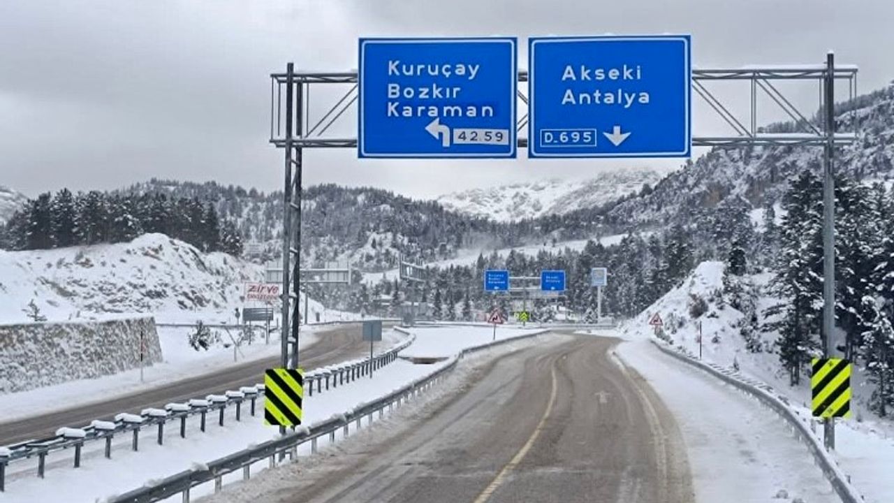 Antalya’yı Konya’ya bağlayan Akseki-Seydişehir karayolunda sadece 25 kilometrelik mesafeye kar yağdı. Kar yağışı etkili olurken, ekipler çok sayıda iş makinası ile kar temizleme ve tuzlama çalışmaları başlattı
