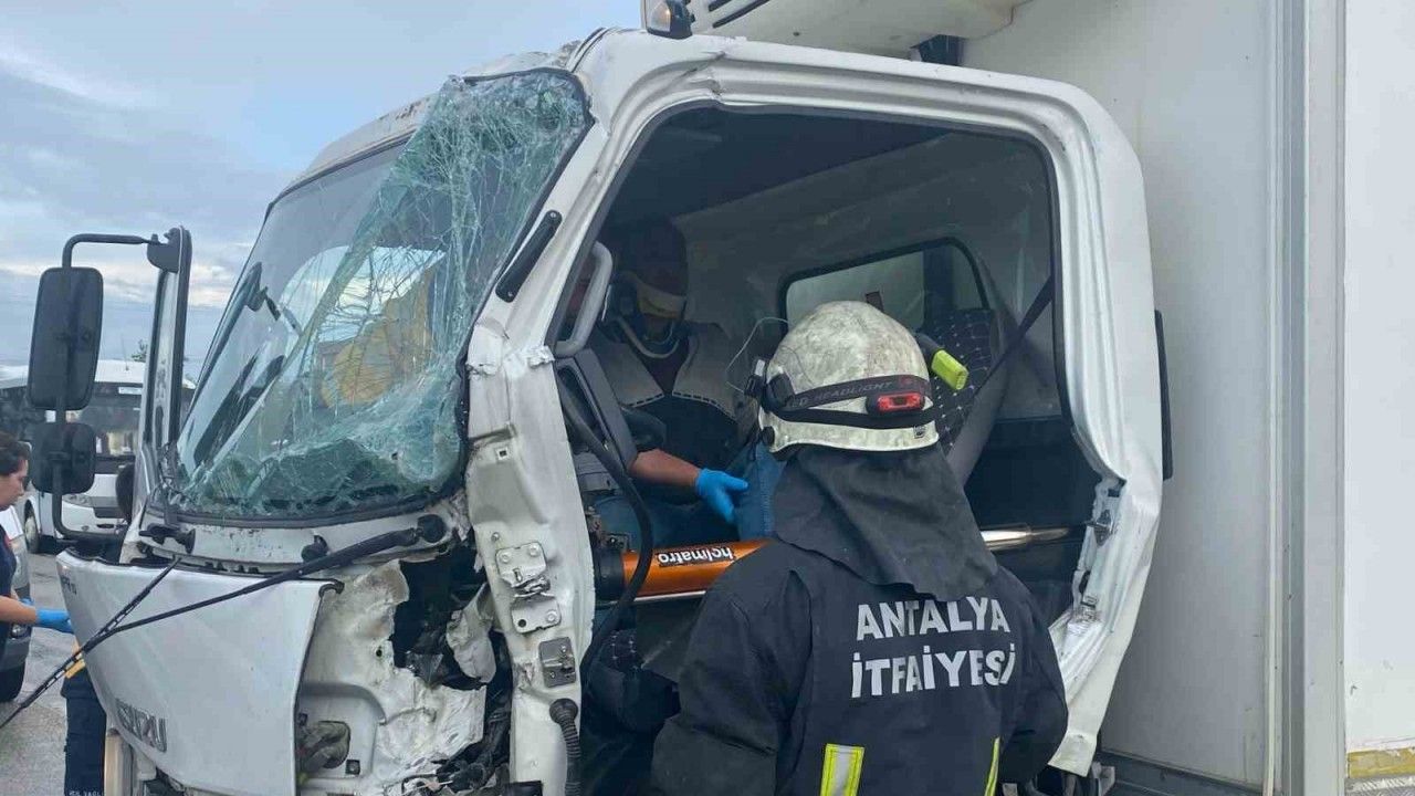 Serik ilçesi Cumalı Mahallesi, D400 karayolu üzerinde meydana gelen kazada, aynı istikamete giden Mustafa A.’nın kullandığı 07 BNE 201 plakalı kamyonet, İlhan Ç.’nin kullandığı cip ile Halil A.’nın kullandığı 26 AKT 508 plakalı kamyonet çarpıştı. İhbar üzerine olay yerine 112 itfaiye, sağlık ve polis ekipleri sevk edildi. Kazada kamyonette sıkışan sürücü Mustafa A., itfaiye ekiplerinin yardımıyla bulunduğu yerden çıkartıldı. Yaralanan sürücü Mustafa A., olay yerinde 112 Acil Sağlık ekipleri tarafından yapılan ilk müdahalenin ardından ambulans ile hastaneye kaldırıldı.