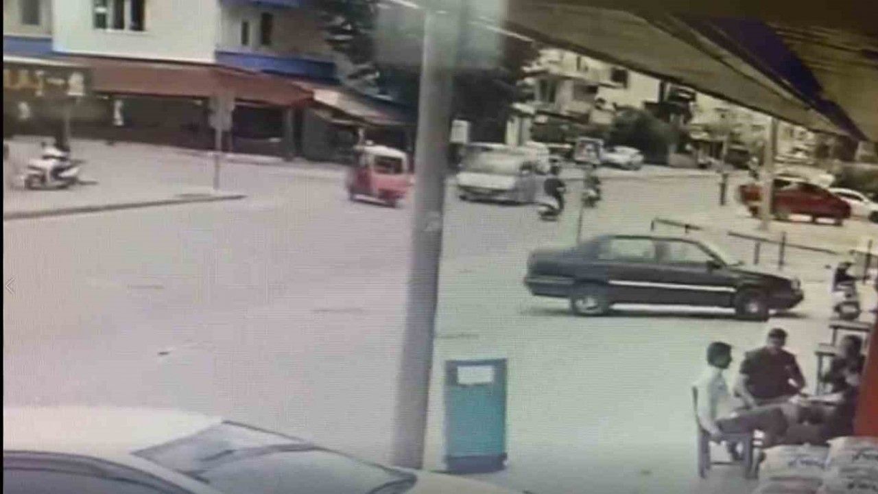 Antalya’nın Gazipaşa ilçesinde hafif ticari araç ile 3 tekerlekli elektrikli motosikletin çarpıştığı kaza, bir iş yerinin güvenlik kamerasına yansıdı. Kazanın ardından her iki aracın sürücüsü de olay yerinden ayrıldı.