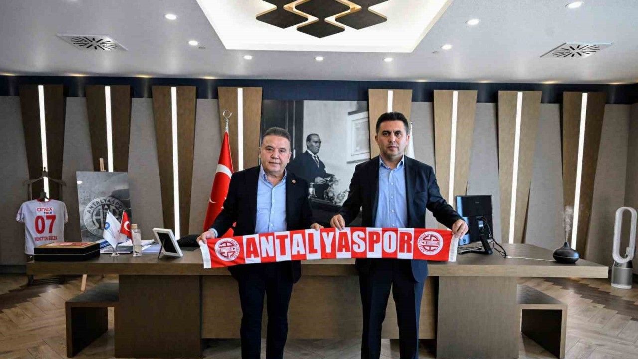 Başkan Muhittin Böcek, Mustafa Ergün ve ekibiyle bir süre sohbet etti. Kulüp Başkanı Ergün, Muhittin Böcek’e ziyaret anısına Antalyaspor atkısı ve ’Muhittin Böcek’ yazılı forma hediye etti.