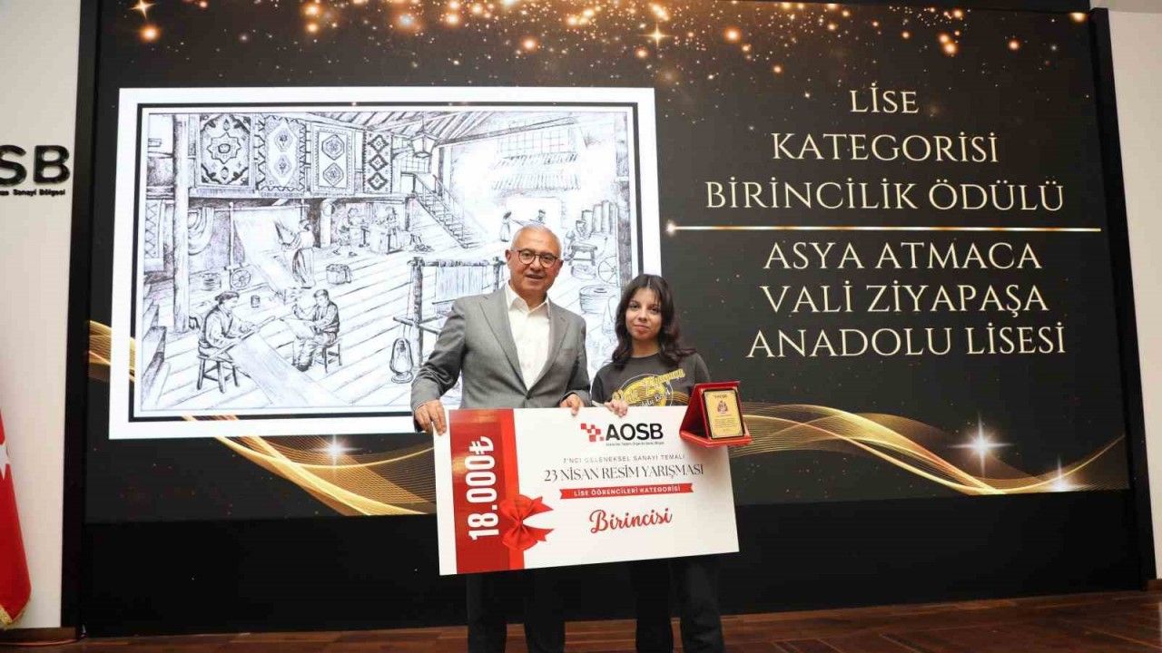 Açılış konuşmalarının ardından jüri üyeleri İl Milli Eğitim Müdür Yardımcısı Murat Sert, Çukurova Üniversitesi Güzel Sanatlar Fakültesi Temel Eğitim Bölüm Başkanı Özlem Uslu, Kadın sanayiciler Elif Tosmur ve Zehra Aslanboğan, Görsel Sanatlar Öğretmenleri Örsan Tarkan, Şengül Demiralay ve Gizem Çetinkaya’ya teşekkür plaketleri AOSB Başkanı Bekir Sütcü tarafından takdim edildi. Dereceye giren öğrenciler ise ödüllerini törene katılan davetlilerin elinden aldı.