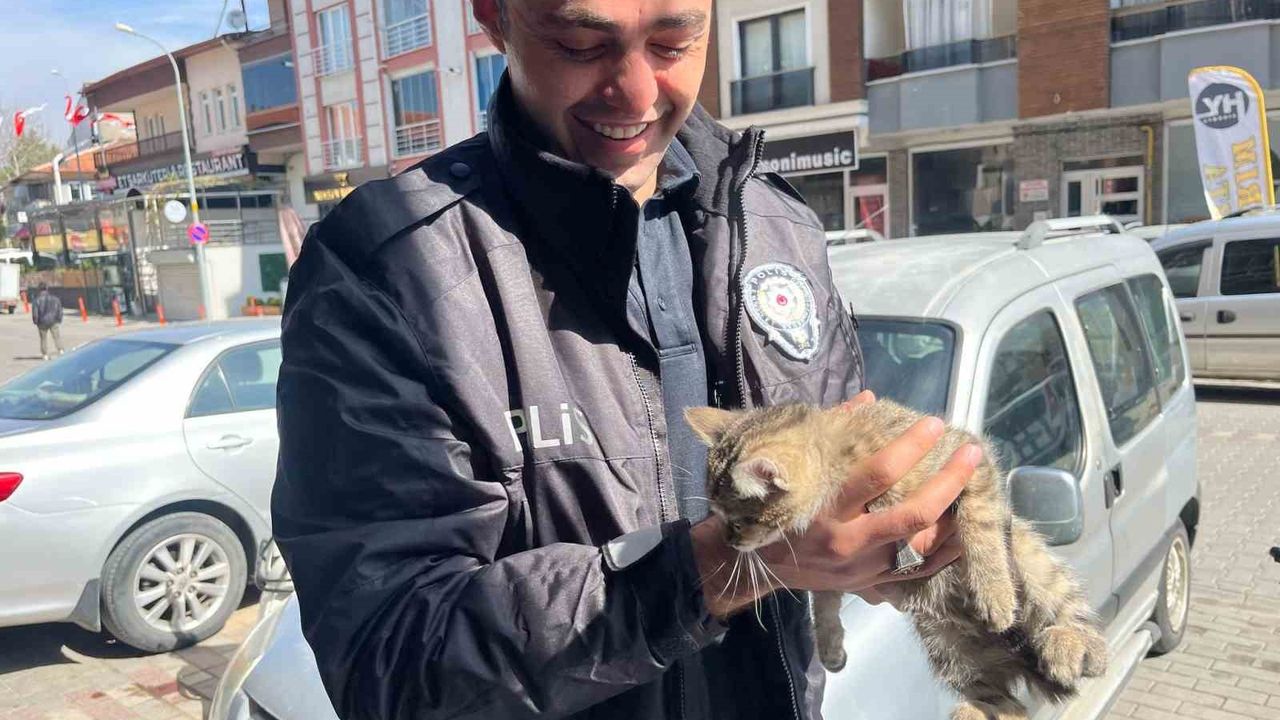Yeni Mahalle Akseven Sokak üzerinde bir aracın motor kısmından gelen kedi sesini duyan esnaf Mustafa İleri, çevrede aracın sahibini aradı ancak bulamayınca aracın ön camına "Motorda kedi var" yazılı not bıraktı. Esnaf, ardından durumu 112 Acil Çağrı Merkezi’ne bildirdi. Kısa sürede olay yerine gelen polis ekipleri, otomobilin kaputunu açarak minik kediyi bulunduğu yerden çıkardı. Ekiplerin titiz çalışmasıyla kurtarılan yavru kediyi sağlık kontrolünden geçirildikten sonra çevredeki esnaf besleyerek, doğal ortamına bıraktı.