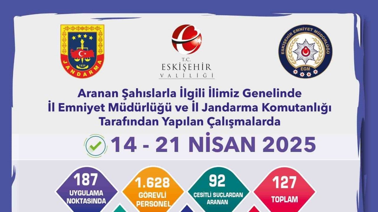 Eskişehir’de polis ve jandarma ekiplerince son 1 hafta içerisinde gerçekleştirilen çalışmalar sonucunda, aranması bulunan 127 şahsın yakalandığı açıklandı.