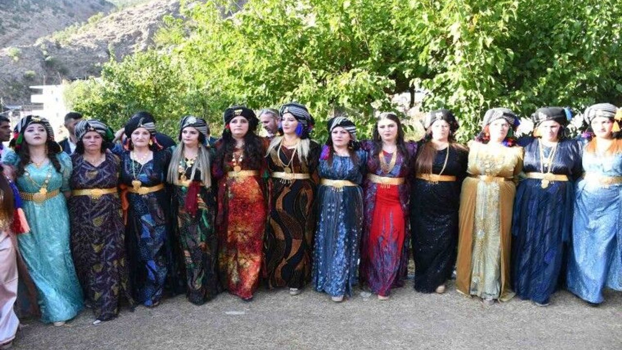 Davetlilerden Evin Tonka, görkemli düğünlerde süslenip geldiklerini belirterek, "Poşilerimizi takıyoruz. Herkesin düğününde takılmıyor. Kalabalık ve tanınmış kişilerin düğünü olunca zorunlu hale geldiği için giyiyoruz. Kültürümüzü yaşatmaya çalışıyoruz" dedi.