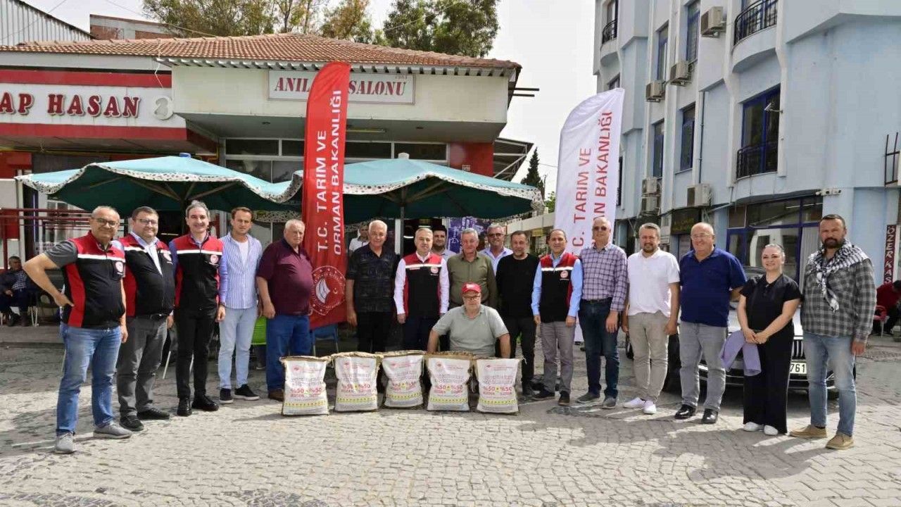 Menemen ilçesi Seyrek Mahallesinde düzenlenen etkinlikle Menemen, Aliağa ve Çiğli’de ayçiçeği üretimi gerçekleştiren 45 üreticiye toplamda 2 bin 125 da alanda ekimi gerçekleştirilmek üzere 85 torba TR 2242 CL yerli hibrit ayçiçeği tohumu teslim edildi.