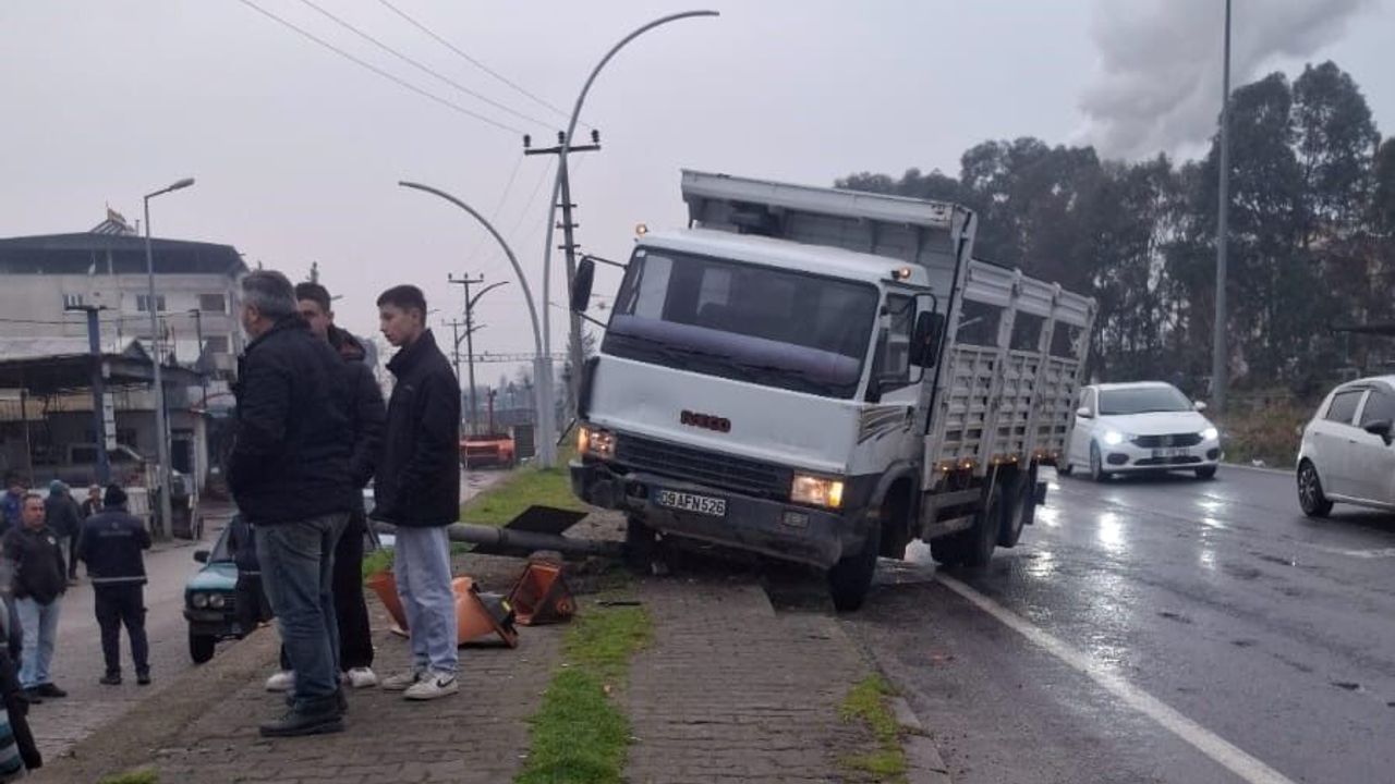 Aydın’ın Köşk ilçesinde hakimiyeti kaybolup kaldırıma çıkan kamyonun çarptığı trafik lambası direğin, o esnada yoldan geçen yayanın üzerine devrildi.