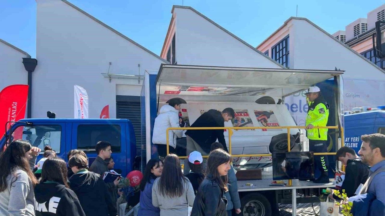 Aydın İl Jandarma Komutanlığı’nın fuardaki standına öğrenciler ve gençler yoğun ilgi gösterdi. Jandarmanın standını bir an olsun boş bırakmayan ziyaretçilere Jandarmanın faaliyet alanları hakkında personeller tarafından bilgilendirmede bulunuldu.