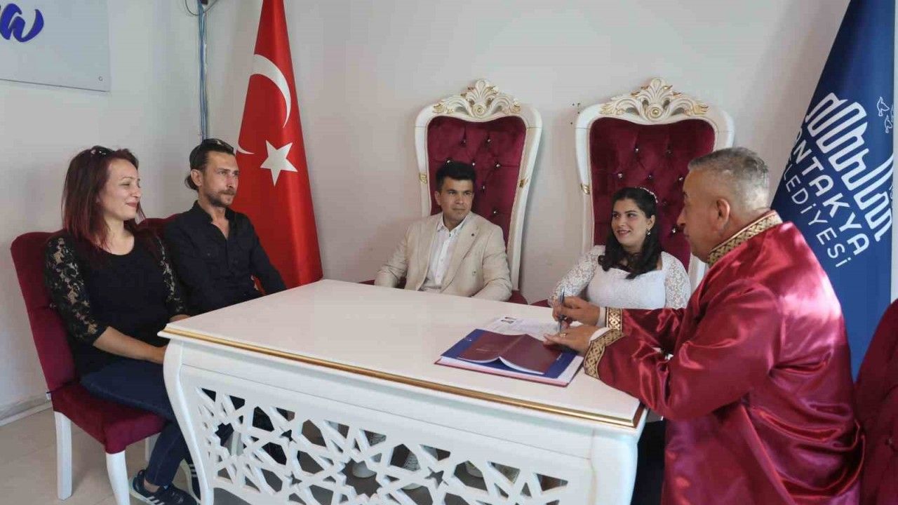 Hatay’da evlenmek için aylar öncesinden ’05.05.2025’ tarihini tercih eden çiftler, nikah dairelerinde yoğunluk oluşturdular.