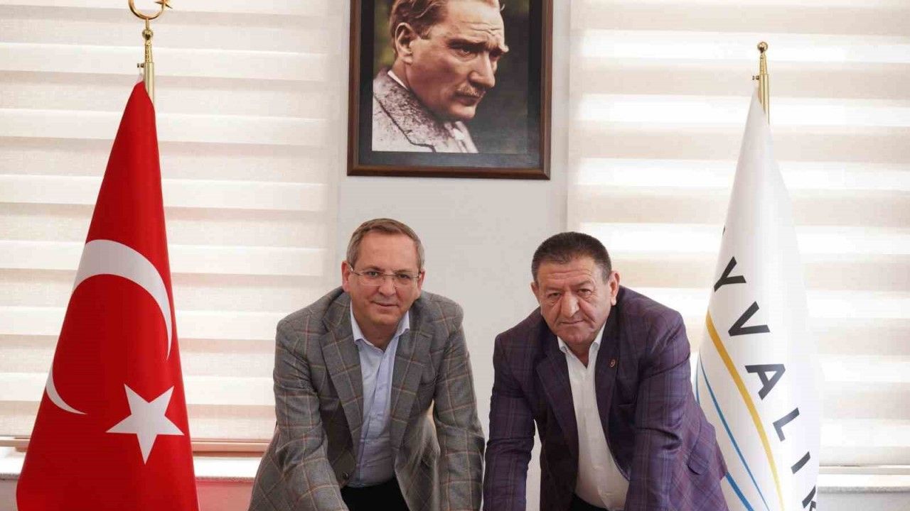Sözleşme Ayvalık Belediye Başkanı Mesut Ergin ile Belediye-İş Balıkesir Şube Başkanı Yüksel Özden tarafından belediye başkanlık makamında imzalandı.